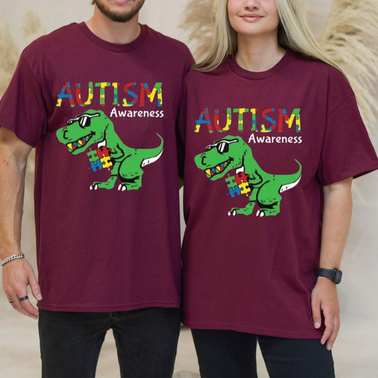 "Ausome Dino" Colorful Autism Tee – Cute Dinosaur Graphic Shirt